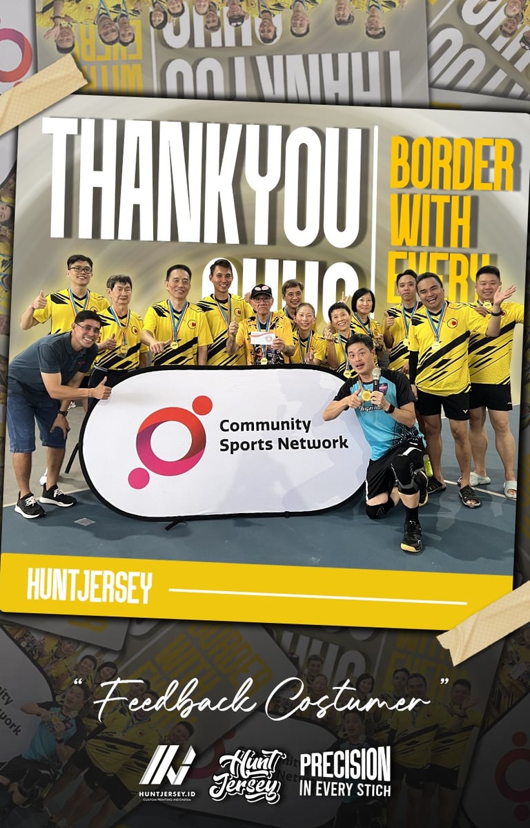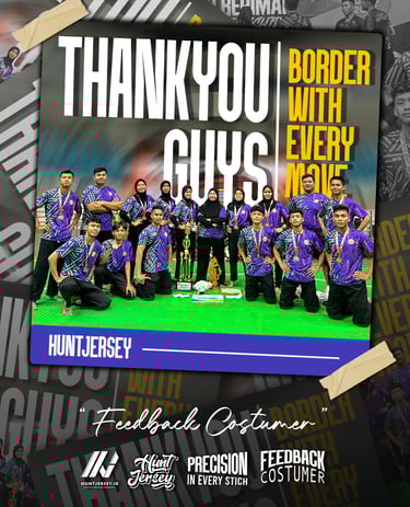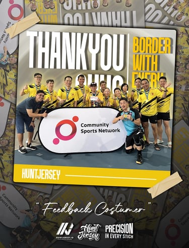 Jersey yang saya pesan dari Huntjersey sangat berkualitas! Proses pembuatan cepat dan hasilnya memuaskan. Sangat direkomendasikan untuk kebutuhan olahraga.